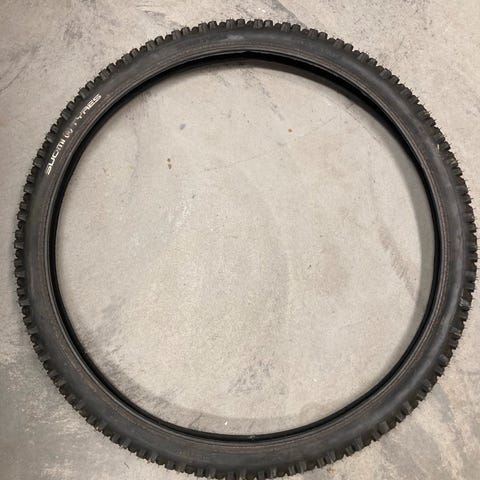Sykkeldekk med dimensjon 26x2.10 (54-559). Kjøpt på Biltema for 399,- pr stk. Brukt en sesong. Selges samlet for 200,-. Det er hele 280 pigger og Biltemas egen beskrivelse stemmer bra: «Grovmønstret dekk med solide pigger. Perfekte på snø og is.»