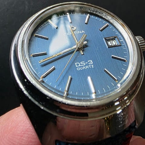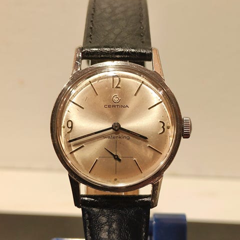 Certina DS fra tidlig 1960 tall. Denne fremstår som godt brukt, men trekker og går veldig bra. Denne har 25-36 urverket som huset de tidligste DS klokkene. 36mm i diameter uten krone.