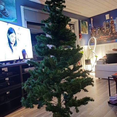 Fint juletre. Vært oppe to ganger. Treet er pakket ned i originalesken. Kjøpt på Power.