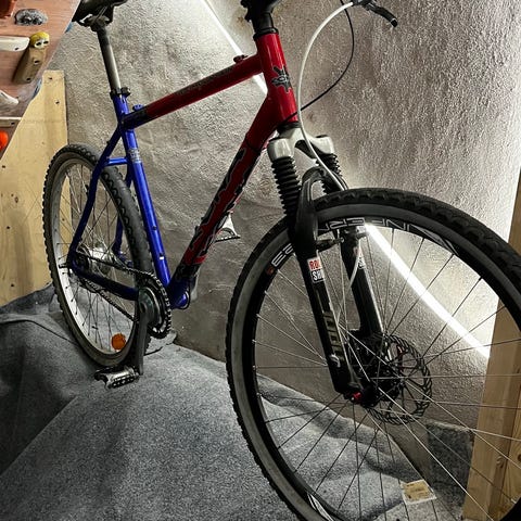 Kona skriver på sin nettside at størrelse 58 passer for dem mellom ca. 180 og 196m. Har et 60mm Kona stem liggende hvis du er redd den blir litt stor, kan bytte ut stemmet som står på med det om det er ønskelig. Alt fungerer som det skal. Følger med skjermer i tillegg om det er ønskelig (se bilder). Selger for å rydde plass i sykkelboden.