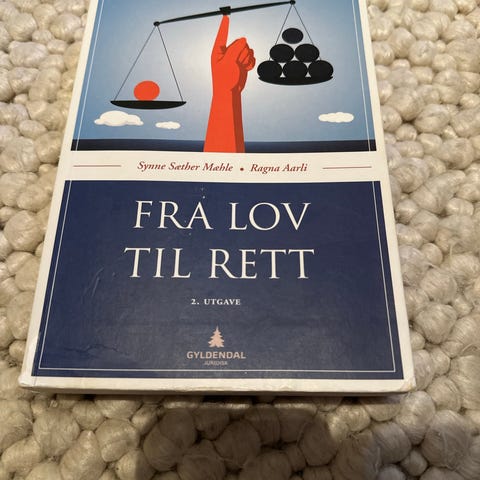 Jeg selger en brukt Rettsvitenskap bok «Fra Lov Til Rett». Forfatterne er Synne Sæther Mæhle og Ragna Aarli. En del kapittel har markeringer med tusj.