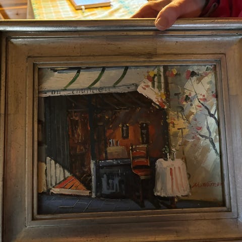 Nydelig lite bilde med vakker ramme. Malt av Tingyan Wang.