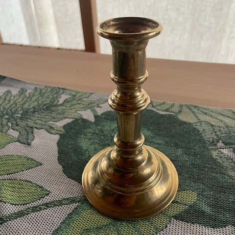Selger en fin og pen lysestake lagt av messing i India. Det skal brukes vanlig lys.