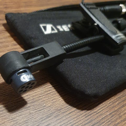 Selger Sennheiser E 908 B, en profesjonell clip-on kondensatormikrofon, svært godt egnet for saksofon og andre blåseinstrumenter.