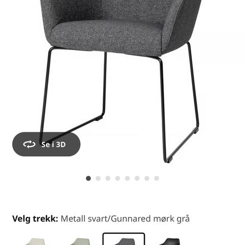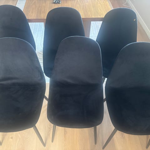 Har også 4 spisestoler nok så like , i sort m/ avtagende bart trekk. Noe slitasje så trekk bør nyttes, 100kr pr stol. ( brukt som reserve stoler)