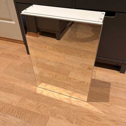Skap overvask med dobbel speildører og 2 stk glass hyller.