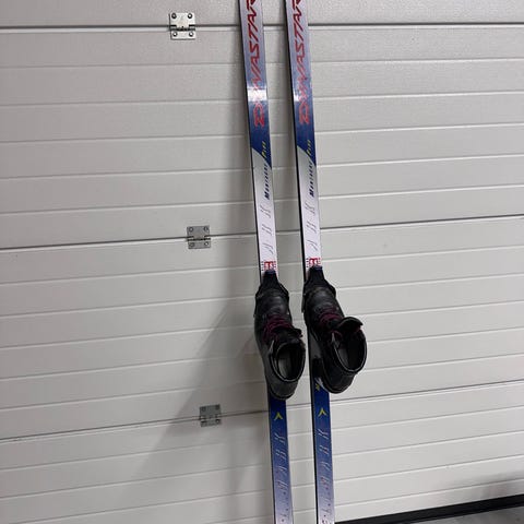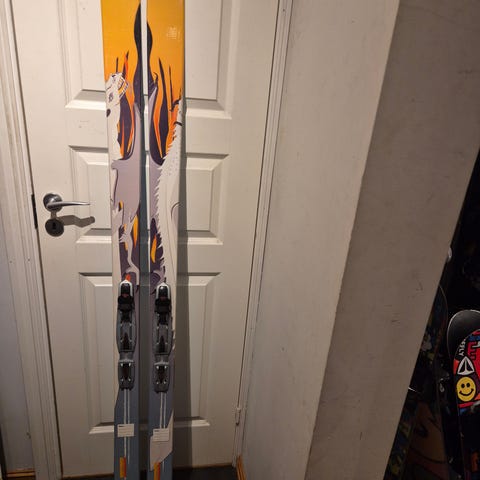 vurd. solgt. Sidecut: 67-57-60 mm. Velbrukte ski og bindinger i bruks stand med bra, skarpe stålkanter, såler med riper/bruksmerker og med bra spenst i skiene.