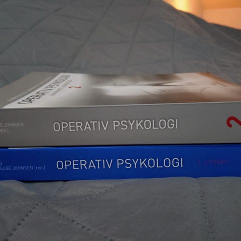 Pensumbøker i god stand. Noen markeringer i operativ psykologi 1 (blå bok). Ellers ingen markeringer. Jeg kan lage fiks ferdig dersom en ønsker å kjøpe kun en eller flere av bøkene også.