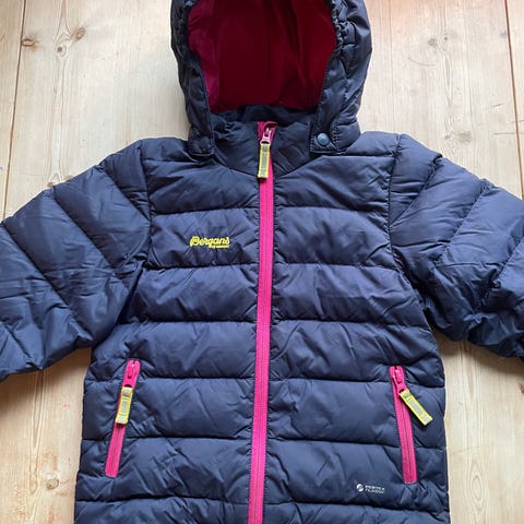 Bergans dunjakke selges, fremstår fint og lite brukt. Jakken er svart og grønn. Str 116.