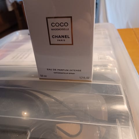 Nesten full parfyme. Den gjennomsiktige korken sitter ikke så godt på.
