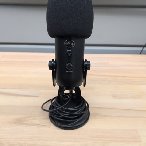Blue Yeti USB-mikrofon med flere opptaksmønstre, utviklet for streaming, podcasting og lydopptak. Mikrofonen er svart og utstyrt med justerbare
