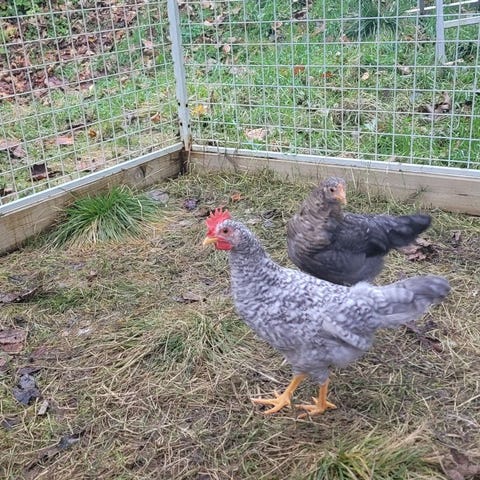 2 jærhøns til salgs. Ca 2 år gamle, har en pause i eggleggingen nå. Men skal legge egg i 2-3 år til.