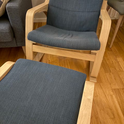 Den var kjøpt for 1år siden, fint lenestol å kose seg i.