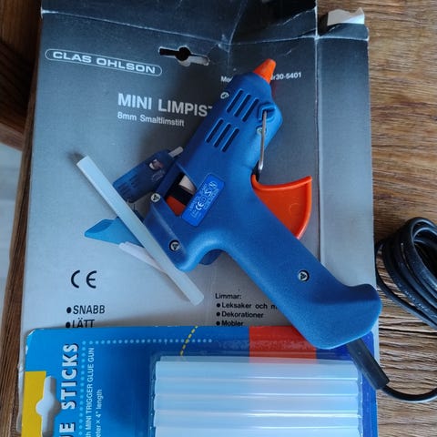 Selger denne pent brukte limpistolen med 21 ekstra "limpatroner"!