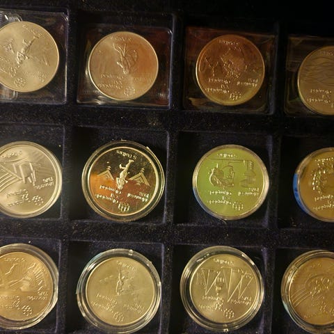 Canada Leaf (22stk) Australian Kangeroo (3stk), Disney, OL på Lillehammer 1994, Norges Mynter (Kong Harald), Argentina World Cup 78, Bahamas Mynter og noen andre utenlandske standard mynter.