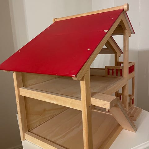 Et flott dukkehus i tre, 2 etasjer, 4 rom,