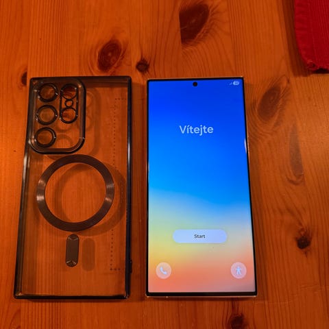 Samsung Galaxy S23 Ultra mobiltelefon med 256 GB lagringskapasitet i svart farge. Telefonen har en stor skjerm med smale kanter og flere kameraer på baksiden for avansert fotografering. Designet for å gi god ytelse og lagringsplass.
