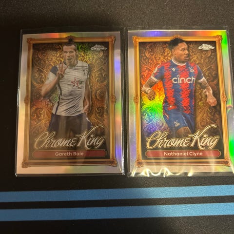 Topps Chrome King Bobby Zamora fotballkort som viser spilleren i West Ham United-drakt. Kortet er en del av Premier League-sesongen 2025/26 og inkluderer informasjon om Zamoras rolle som spiss og hans prestasjoner i Premier League mellom 2005 og 2008.