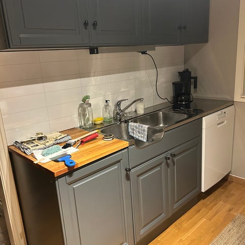 Kjøkkenet må hentes. Kommer halvveis demontert