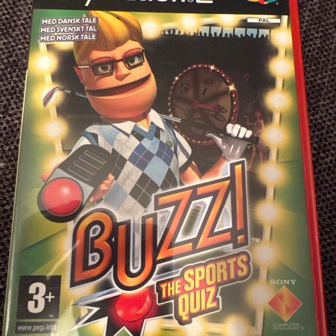 Sony Buzz The Sports Quiz PlayStation 2 spill. Inkluderer quiz med sportsrelaterte spørsmål. Passer for spillere fra 3 år og oppover.