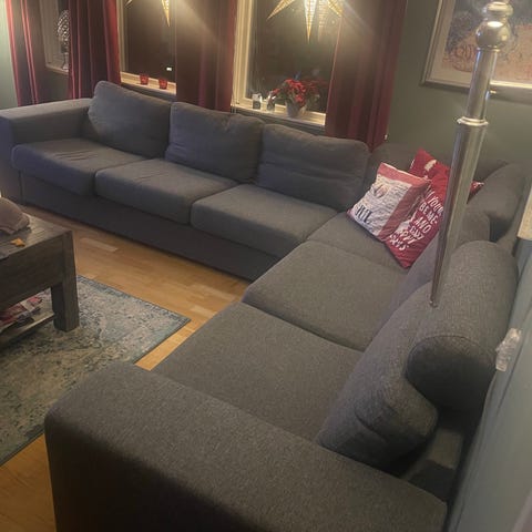 Denne elegante hjørnesofaen kombinerer moderne uttrykk med behagelig sittekomfort. Det mørk grå stoffet gir et eksklusivt og tidløst preg som passer inn i både lyse og mørke interiører. Sofaens stramme linjer og gode puter skaper en balansert miks av stil og funksjon, perfekt for både hverdagsbruk og avslappende kvelder. Et solid og praktisk valg for deg som ønsker en romslig sofa med et moderne uttrykk.