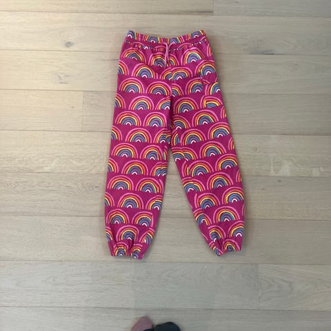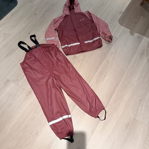 Regntøy bukse i størrelse 120, rosa farge, laget av polyester.