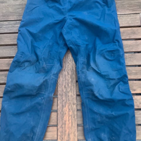 Lidl regnbukse i størrelse 116, laget av polyester materiale. Den har justerbare stropper, elastiske mansjetter og refleksdetaljer for økt synlighet.