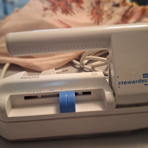 Selger et originalt MUJI (無印良品) reise-strykejern, modell TPA-MJ211. Kompakt og lett, perfekt for reiser eller liten bolig.