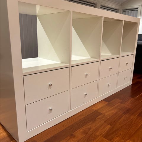 Ikea Kallax hylle med 8 rom selges, kan brukes både stående eller liggende