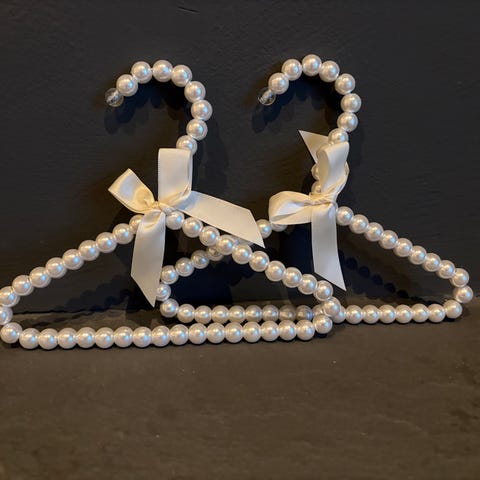 Sett med 4 perlehenger i rosa og hvit. Hengere er dekorative og har kuleformede perler som gir et unikt utseende. Passer til oppheng av klær. Ca 19 cm.