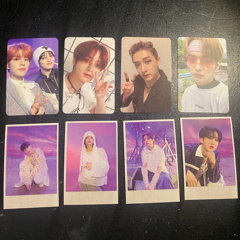 Samling av enhypen fotokort med ulike bilder av medlemmene. Fotokortene varierer i motiv og størrelse, og er egnet for samlere og fans av enhypen alle kort koster 25/30kr