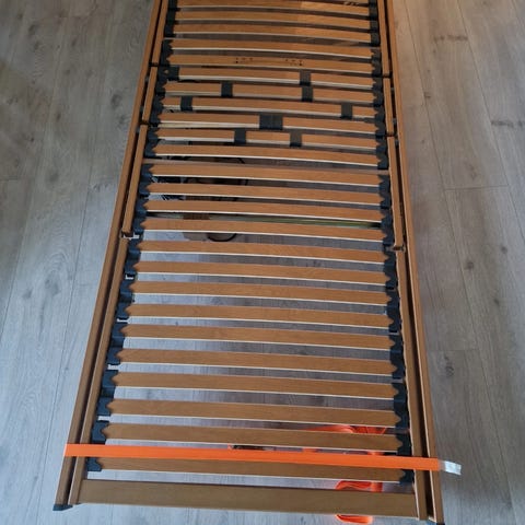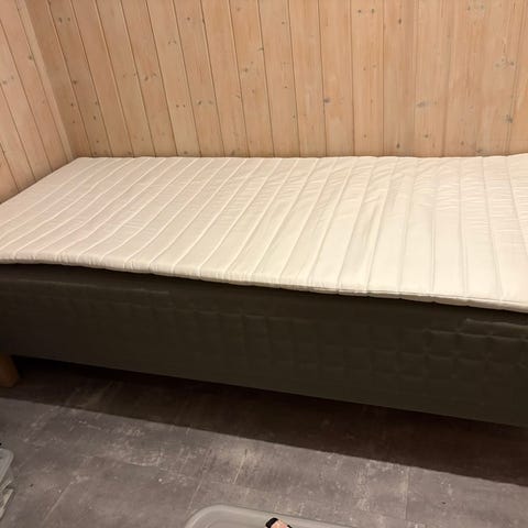 Selger en pent brukt 120x200 cm seng i god stand. Overmadrass kan følge med om ønskelig, den har trekk som kan tas av og vaskes. Et par flekker på sengen, men kan vaskes bort. Selges grunnet flytting.