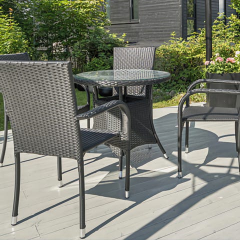Hagehus Hagesofapute for 3-seters hagesofa med stripet mønster i grå og hvit. Putene er polstrede for ekstra komfort og designet for utendørs bruk. Passer til hagesofaer med plass til tre personer.