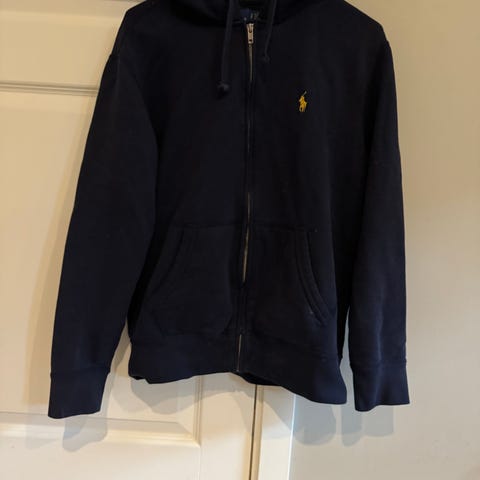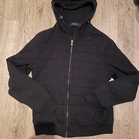 Ralph Lauren Polo hettejakke i svart farge, størrelse S, laget av bomull. Jakken har glidelås og hette, egnet for menn.
