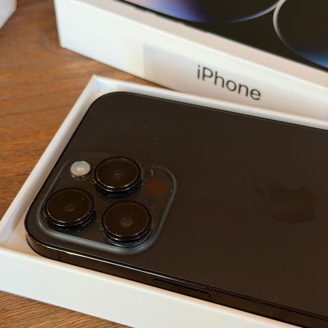 Apple iPhone 14 Pro mobiltelefon med 256 GB lagringskapasitet. Ikke noe riper på kjermen har brukt skjermbeskytter helle tiden,