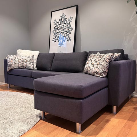 Pent brukt hjørnesofa söderhamn , sjeslongen kan speilvende, har begge armlene til sofa