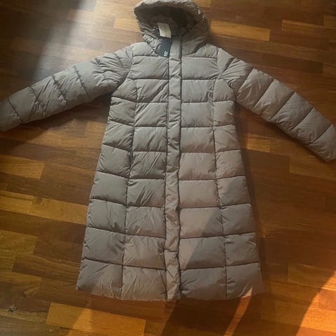 Lang, figursydd boblejakke. Sidelommer med glidelås. Hette med snøring. Glidelås og vindstolpe med trykk-knapper. Jakken er impregnertmed Bionic finish® eco, vilket gjør atden er vannmotstanden.