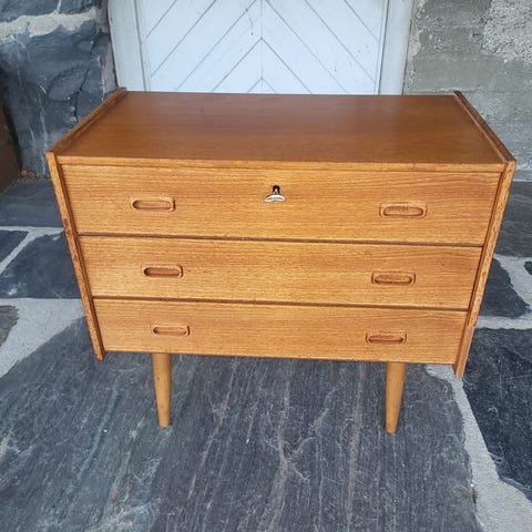 Sjarmerende, retro og låsbart skatoll i teak etter tante selges rimelig pga plassmangel. Nøkkel medfølger🗝️