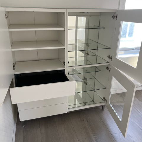 Hylleseksjon med 8 skuffer i god stand ,147cm X 76cm.Dybde ca 40cm.