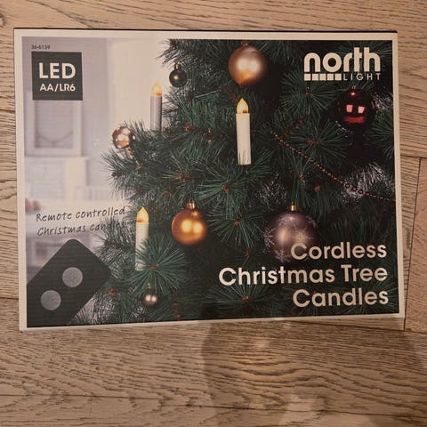 Juletrelys, LED, uten ledning. Med egen fjernkontroll/timer. En eske består av 10 lys. Selges samlet, 2 esker, totalt 20 lys. Merke: STAR Trading fra Sverige. Lekre lys som er brukt to sesonger.