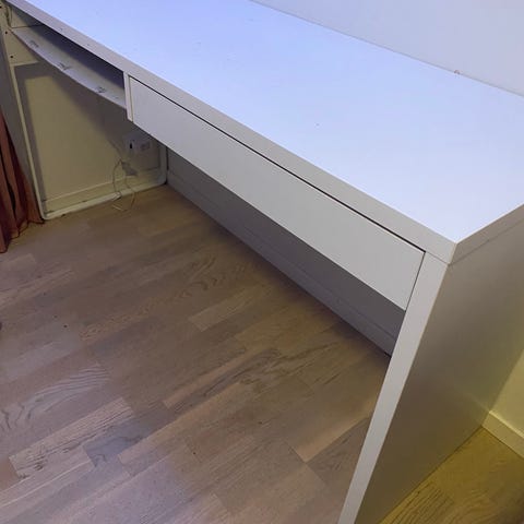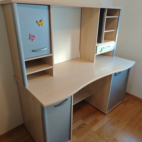 Pent, men godt brukt skrivebord gis mot henting. Må hentes innen 28.12. Førstemann til mølla. Matchende reol selges.