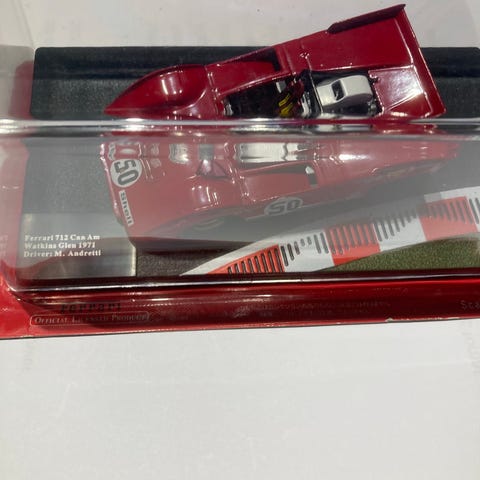 Ferrari 312 P modellbil i skala 1:43. Rød farge med detaljer som representerer bilen fra 1974. Egnet for samlere og som dekorasjon. 24 hour Le Mans med førere J C Andruet - T Zeccoli. Utgitt av Hachette eller Altaya