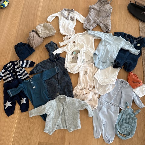 Tykk og isolerende. Brukt som sovedress. Kan brette over både armer og bein.