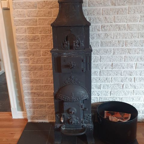 Høy antikk ULEFOS vedovn No. 355 – svært pen stand