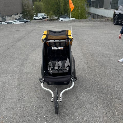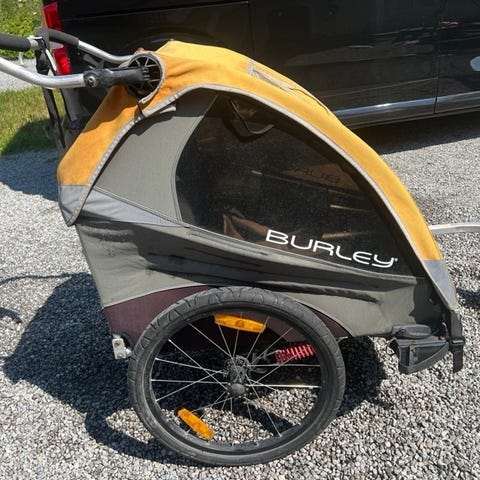 Selger en Burley sykkelvogn. Modellen heter Cub og har plass til to barn og godt med bagasje. Det følger med ekstra fremhjul, fungerer godt som joggevogn.