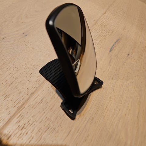 Bil speil med sugekopp for enkel montering. Innvendig speil. Speilet har rektangulær form med svart ramme og sugekopp for feste på innsiden av bilvinduet eller annet glatt underlag for å se bakover.