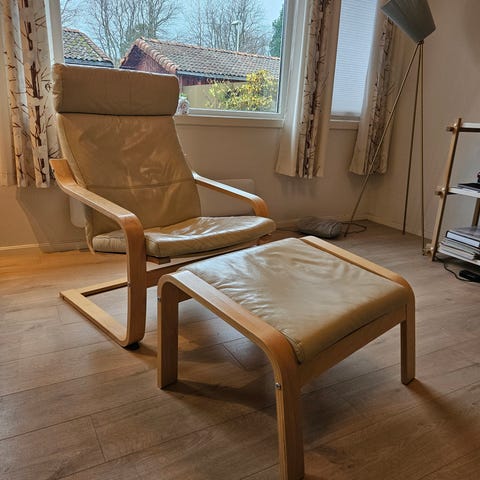 IKEA POÄNG lenestoler – 2 stk (én med puff)