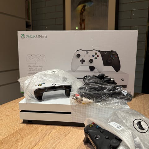 Microsoft Xbox One S konsoll med 2 kontroller + ratt og pedaler.