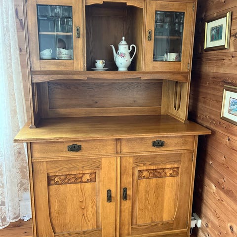 Gammelt vitrineskap i tre med glassdører