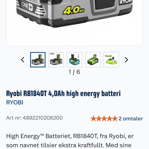 Ryobi batteri drift lys + sag